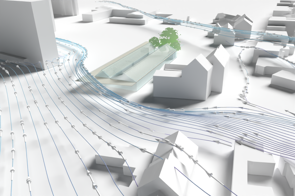 - Indoor comfort map (PET) and urban wind around a project, carried out by AREP, in Belgium